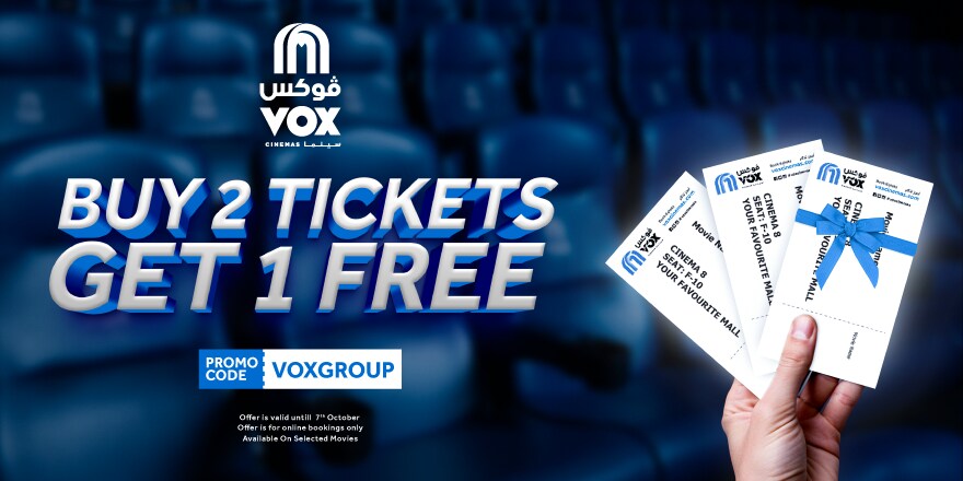 Exclusively available when you book online at voxcinemas.com or the VOX Cinemas app and use the code VOXGROUP.